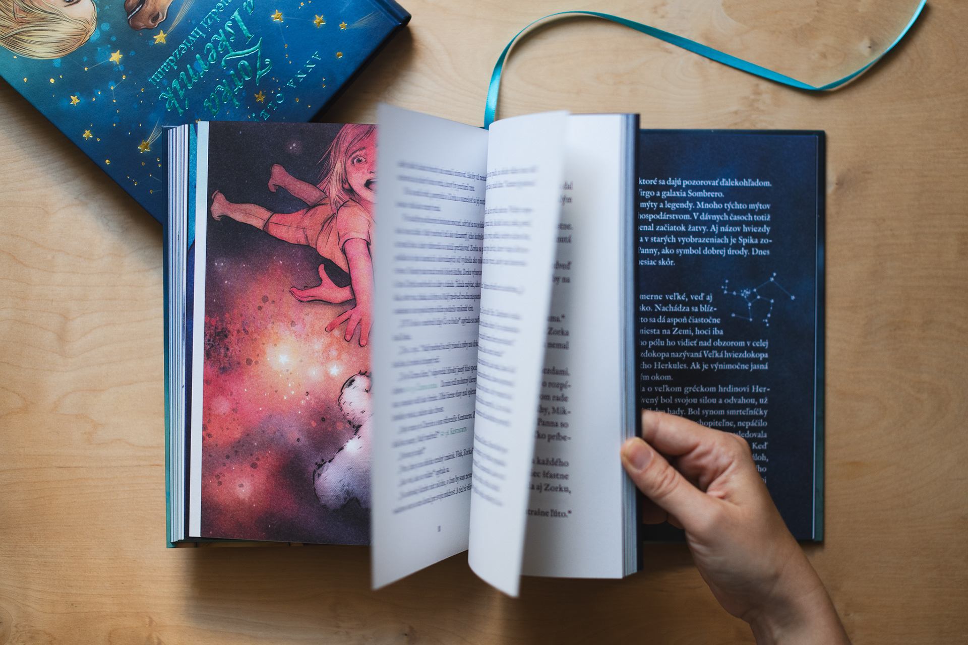 Splašeným skokom na nočnú oblohu sa začína hviezdne dobrodružstvo Zorky a Iskerníka, strapatého dievčatka a rovnako strapatého poníka. O vlások uniknú rozzúrenému Býkovi, spriatelia sa s Malým medveďom, zamotajú hlavu Herkulovi, spôsobia vesmírny chaos a Veľká medvedica sa s nimi podelí o misku medu a svoju múdrosť.